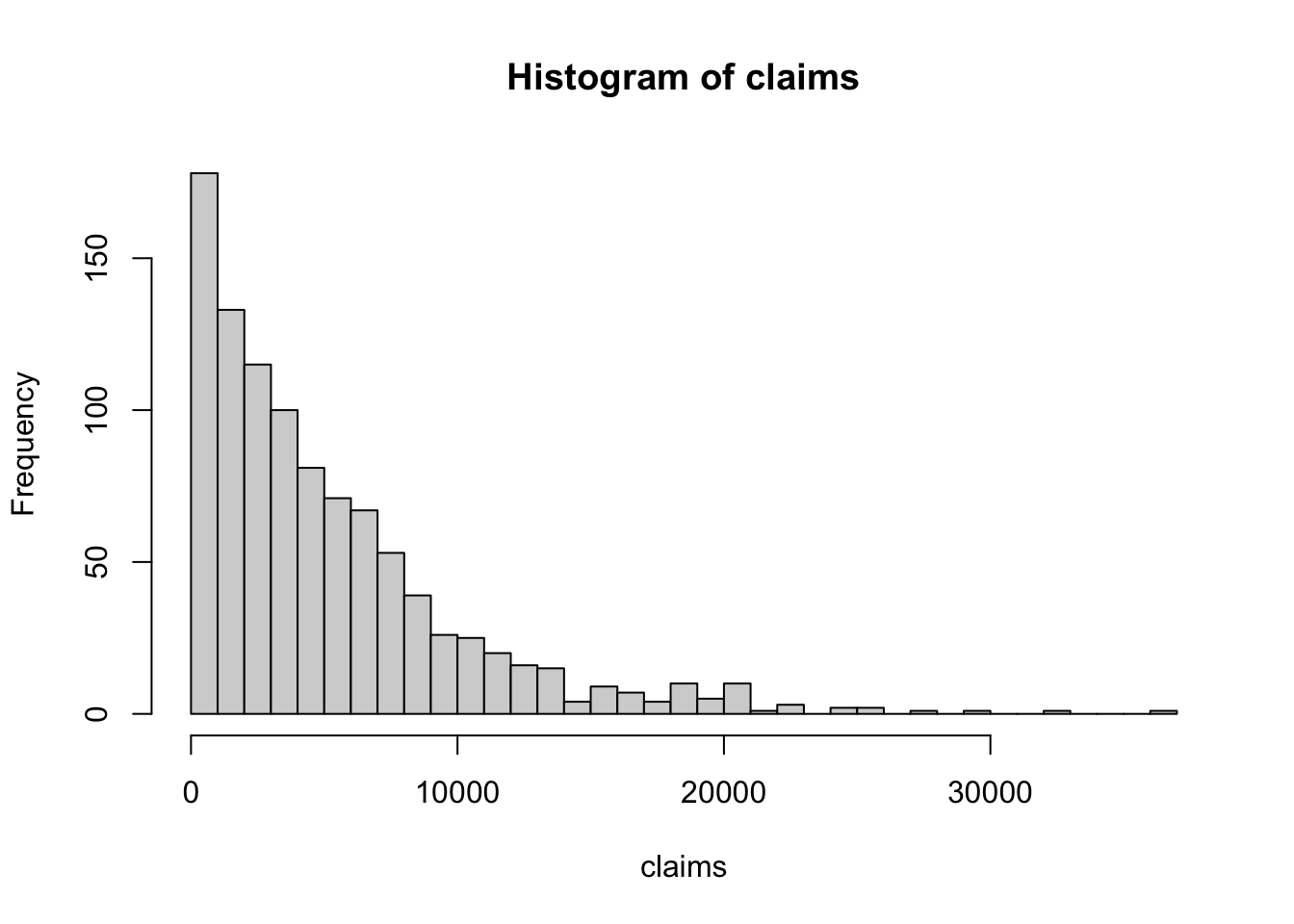 summary(claims) Min. 1st Qu. Median Mean 3rd Qu. Max.